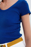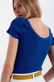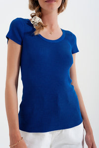 Camisola de malha com nervuras apertadas e pescoço redondo em azul