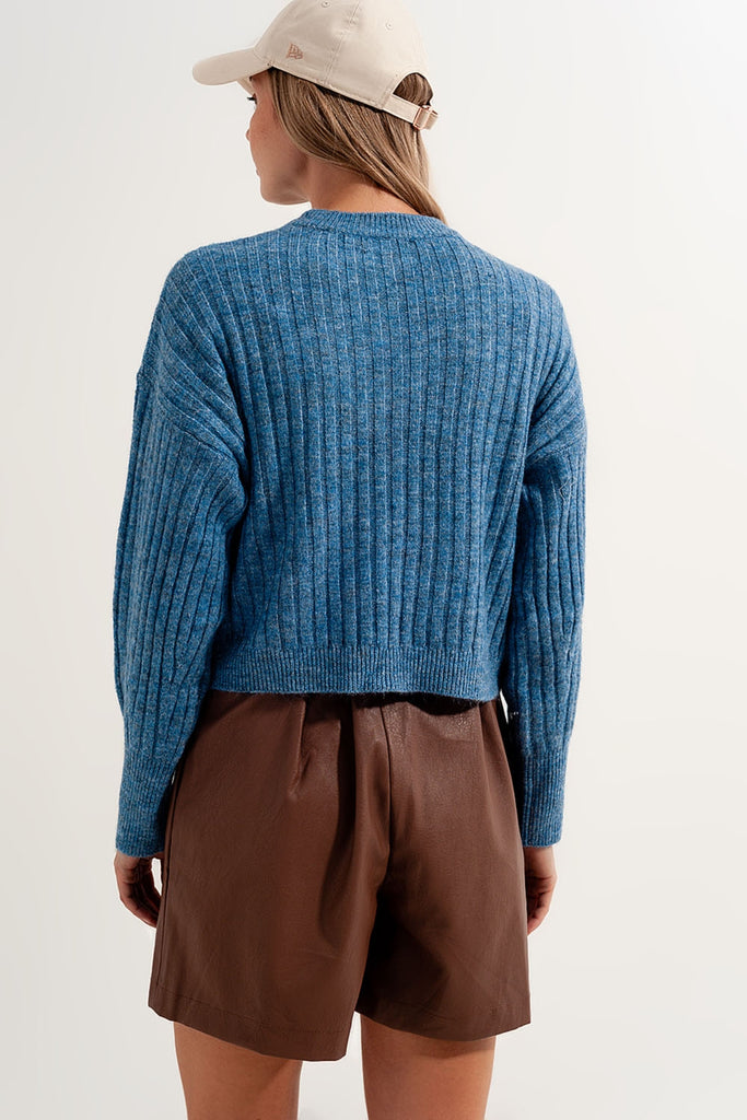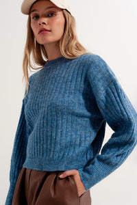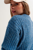 Camisola de malha quadrada azul com pedaços