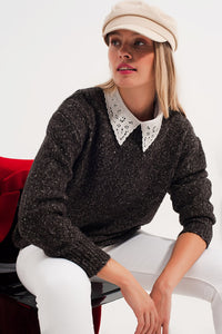 Camisola de pescoço mosqueado de cor preto para tripulação