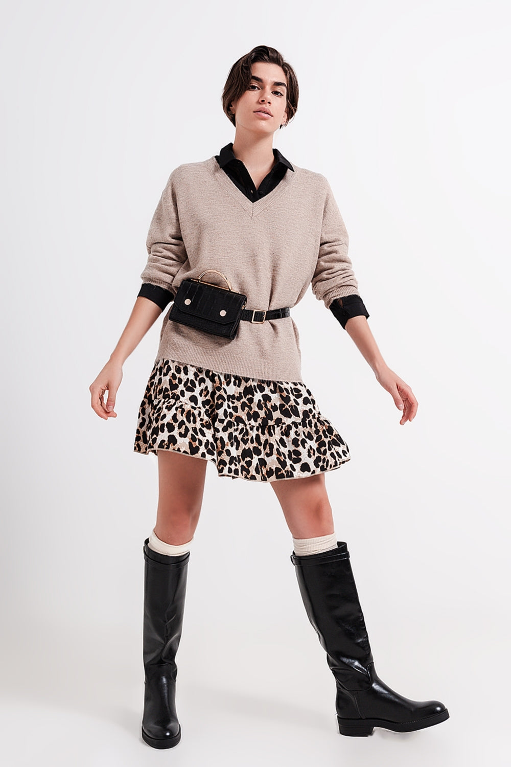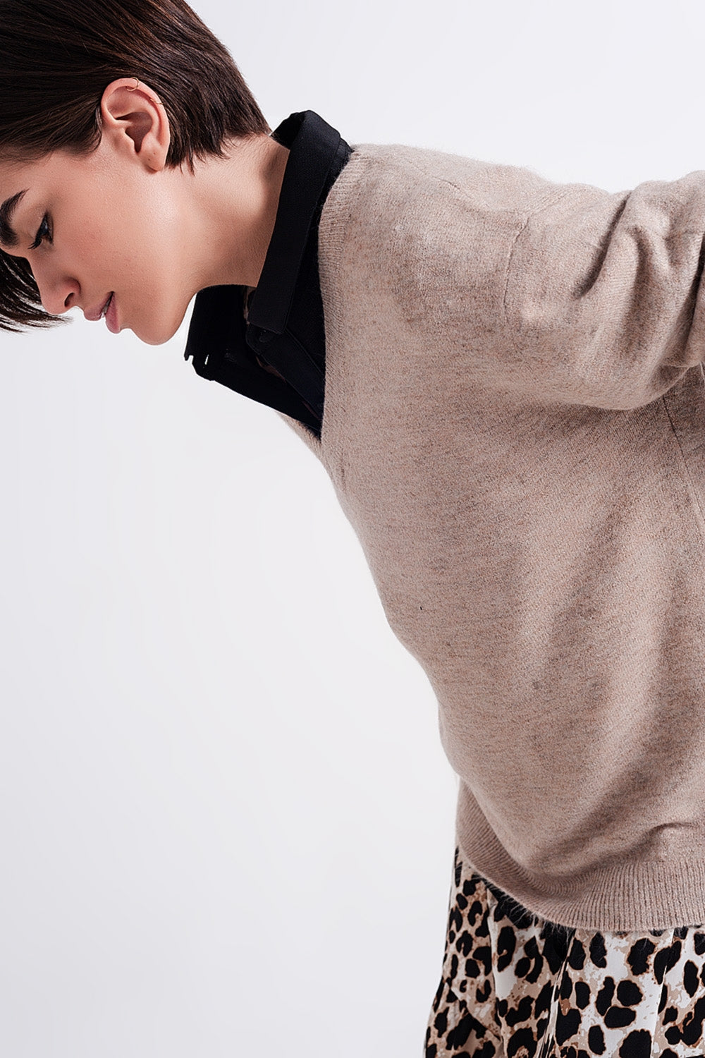 Camisola em V castanho