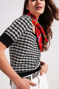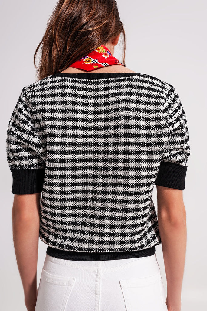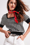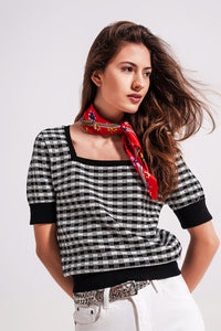 Camisola preta e branca com decote quadrado em tecido de malha macia