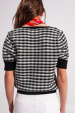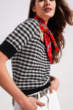 comprimento: Corte curto. Subcategoria: Jumper . Mangas: Manga curta. Impressao: Desenho quadriculado. estilo: Casual. Tecido: Malha fina. runs true to size. S.