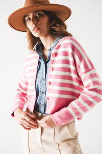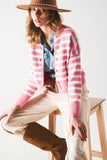 Cardigã às riscas rosas em tecido de malha leve