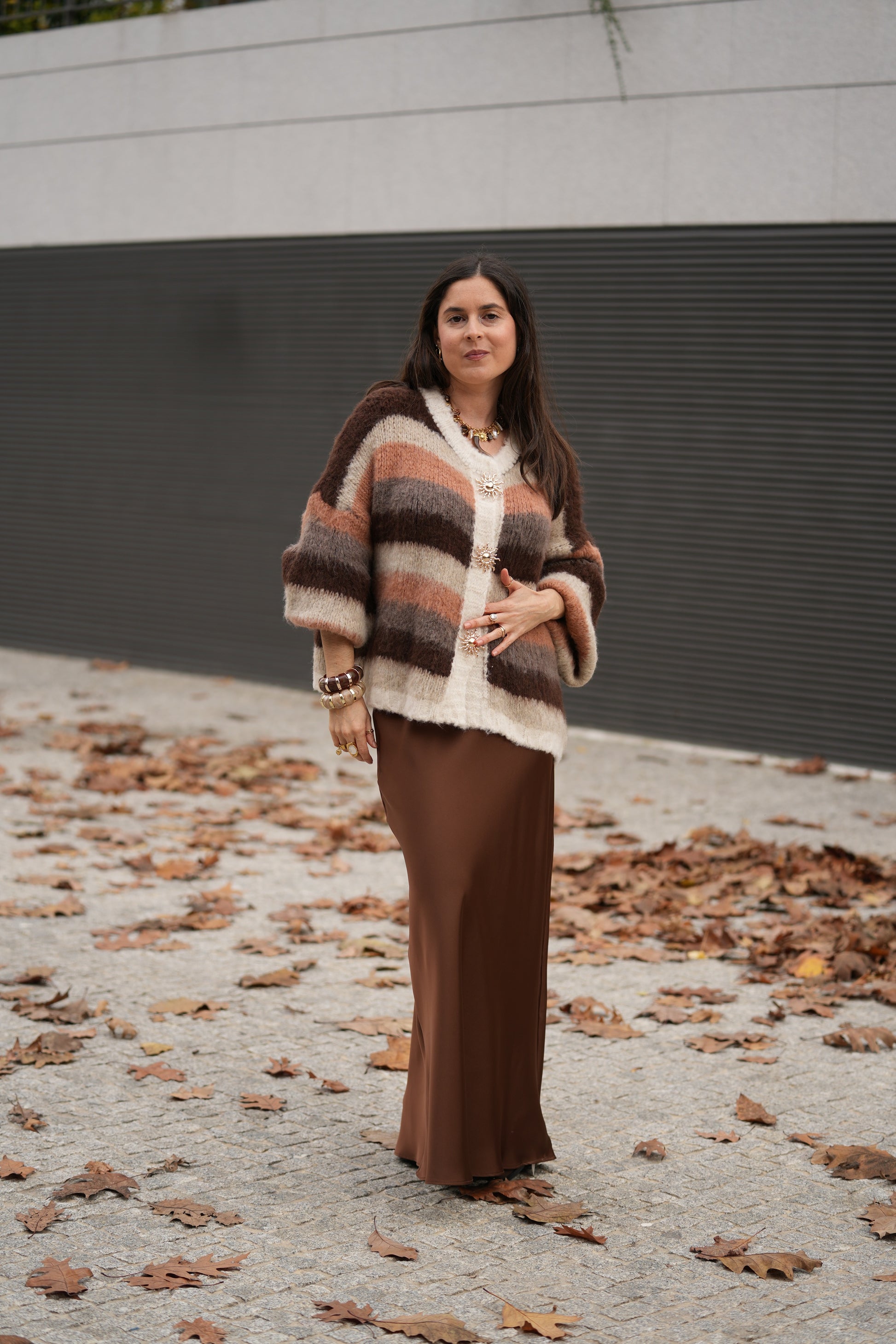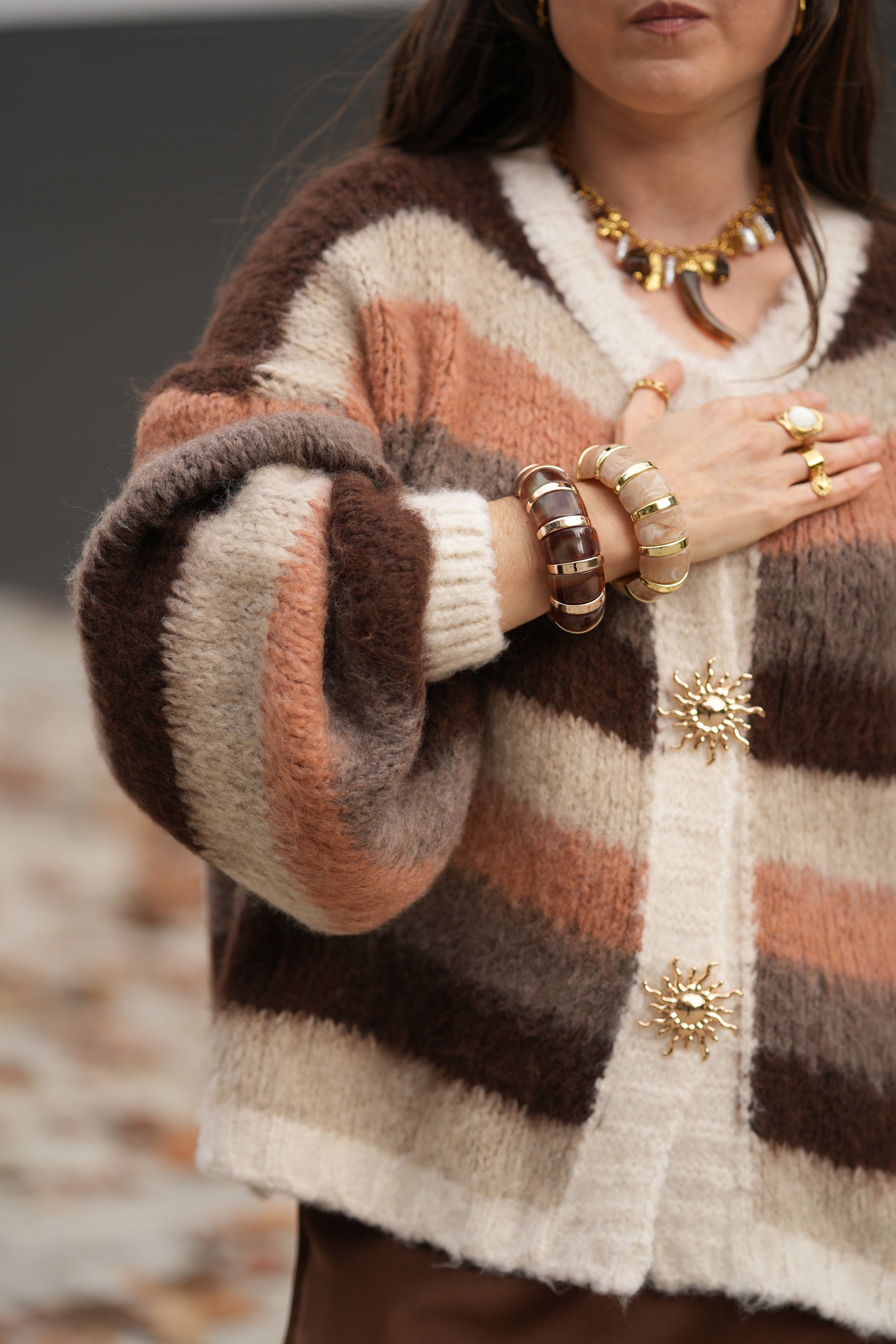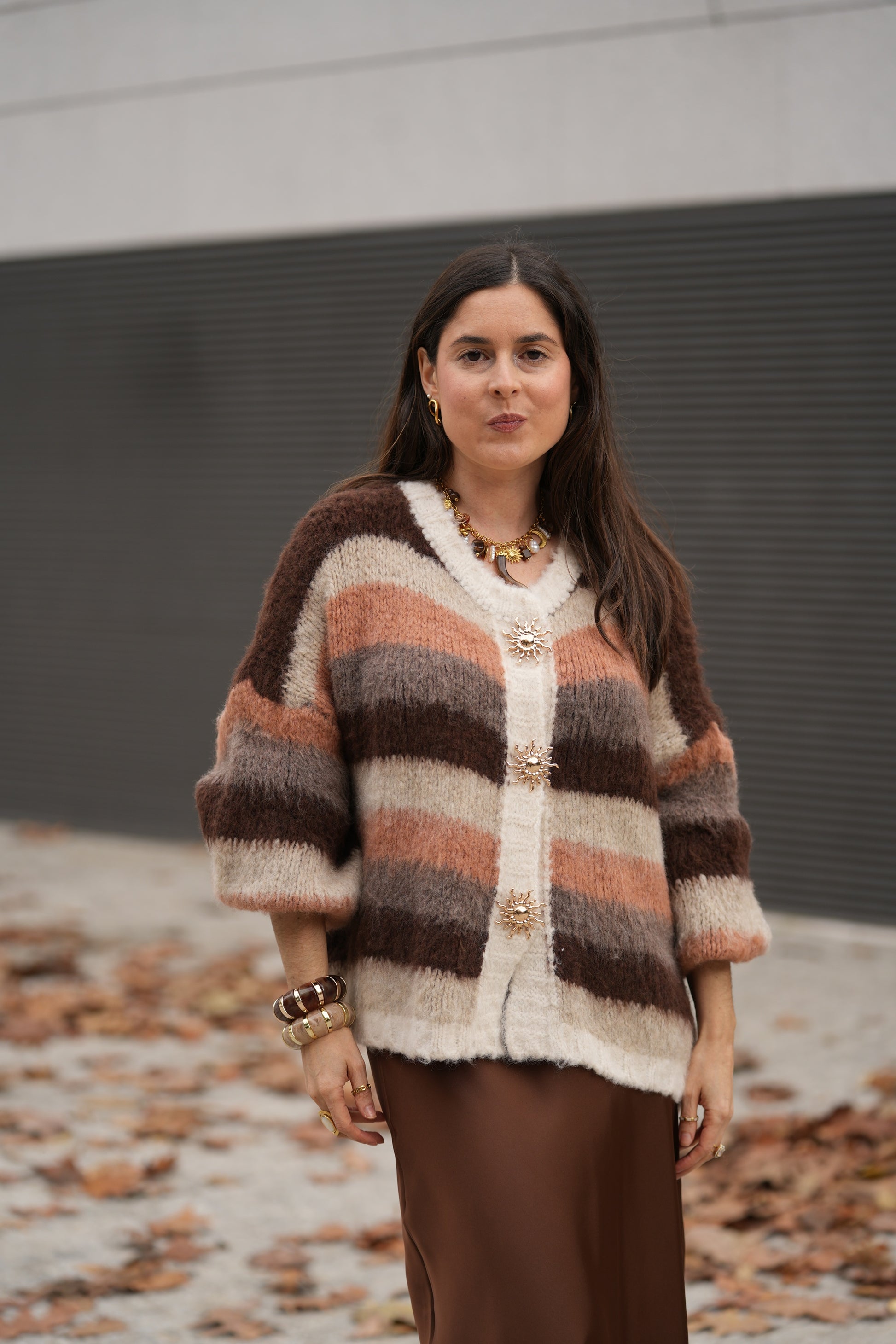 Cardigan oversize. Aplicações em forma de sol removíveis (alfinete).