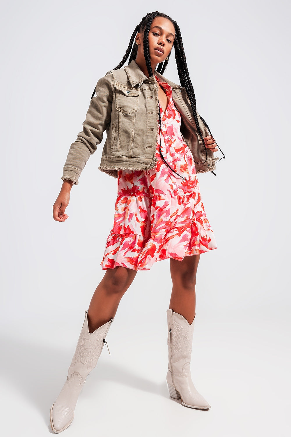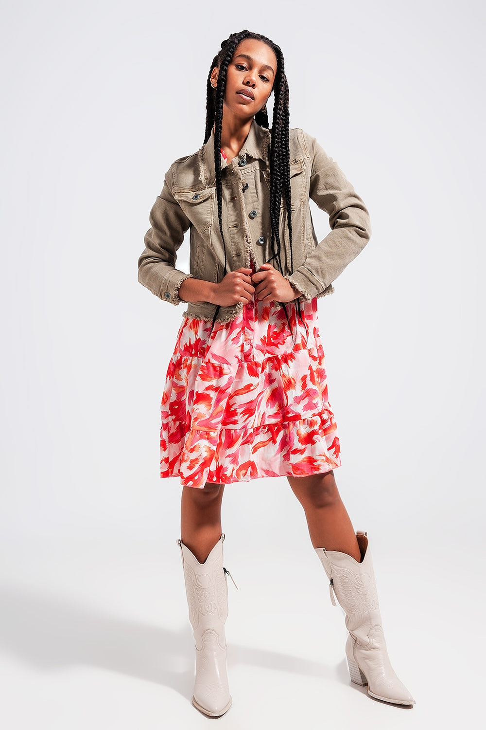 bolsos: Bolsos de peito. Bordadura: Bordas esfarrapadas. colarinho: Colarinho largo. comprimento: Corte curto. Cortam: Ajuste do corpo. Detalhes do produto: Bolsos funcionais. estilo: Casual. Fechamento : Fecho do botão. Mangas: Mangas longas. Subcategoria: Jaqueta de ganga. Tecido: Ganga elástica. Tipo calças de ganga: Desenho de efeito desgastado. runs true to size. S.