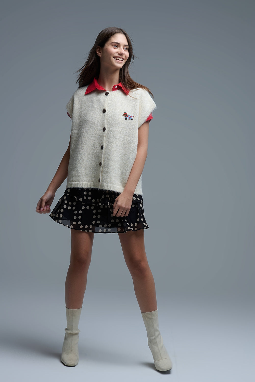 Colete de malha descontraído em creme com pormenor bordado de um cão giro
