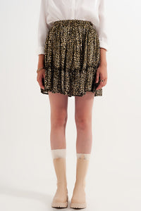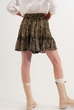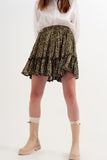 Mini-saia chiffon verde com cintura elástica e tecido brillante
