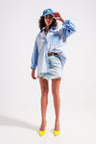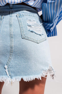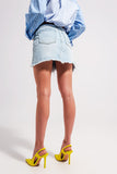 Mini saia de ganga com lavagem azul clara e bainha inacabada
