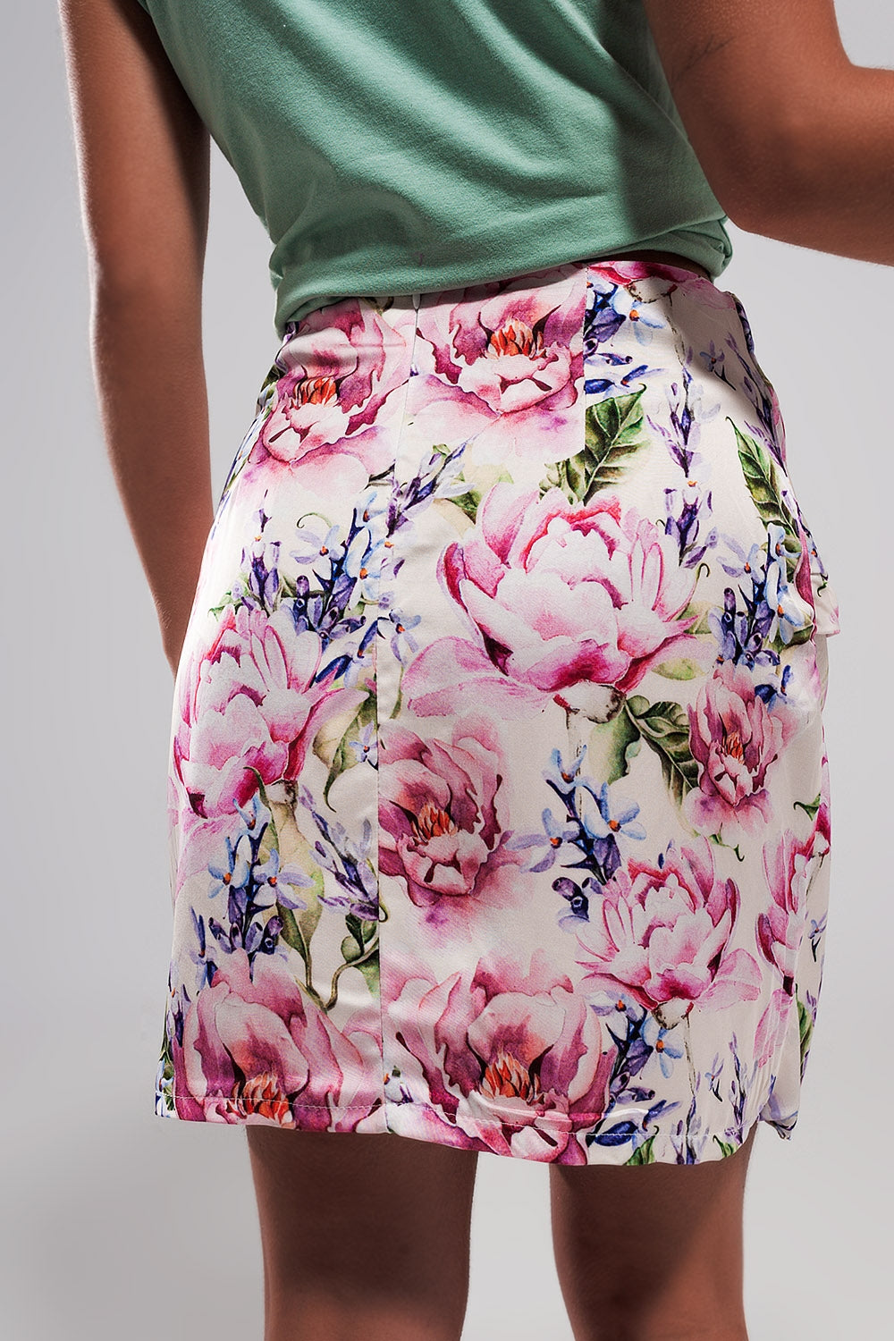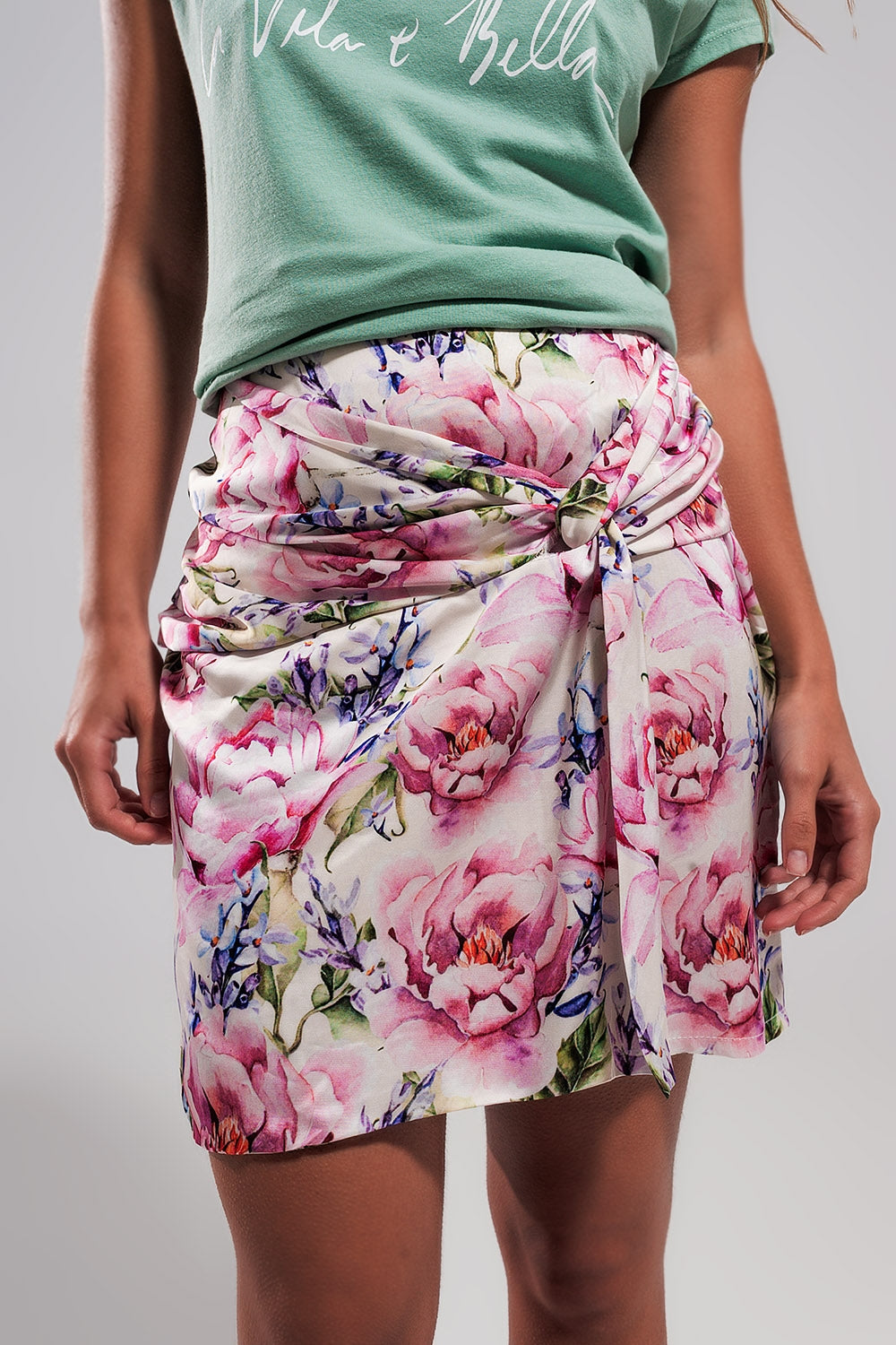 comprimento: Comprimento Mini. Subcategoria: Saia . Impressao: Com estampa de flores. Cortam: Ajuste do corpo. estilo: Romantic. Tecido: Cetim. Fechamento : Fecho de zíper. Detalhes do produto: Detalhe do laço. Cintura : Fita com nó lateral. runs true to size. S.