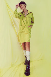 comprimento: Comprimento Mini. Subcategoria: Vestidos. colarinho: Colarinho largo. Mangas: Mangas longas. Cortam: Desenho amplo. estilo: Daily. detalhe: Punhos abotoados. Tecido: Corduroy. bolsos: Bolsos laterais. Fechamento : Botões parciais. Detalhes do produto: Bolsos funcionais. runs true to size. S.