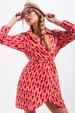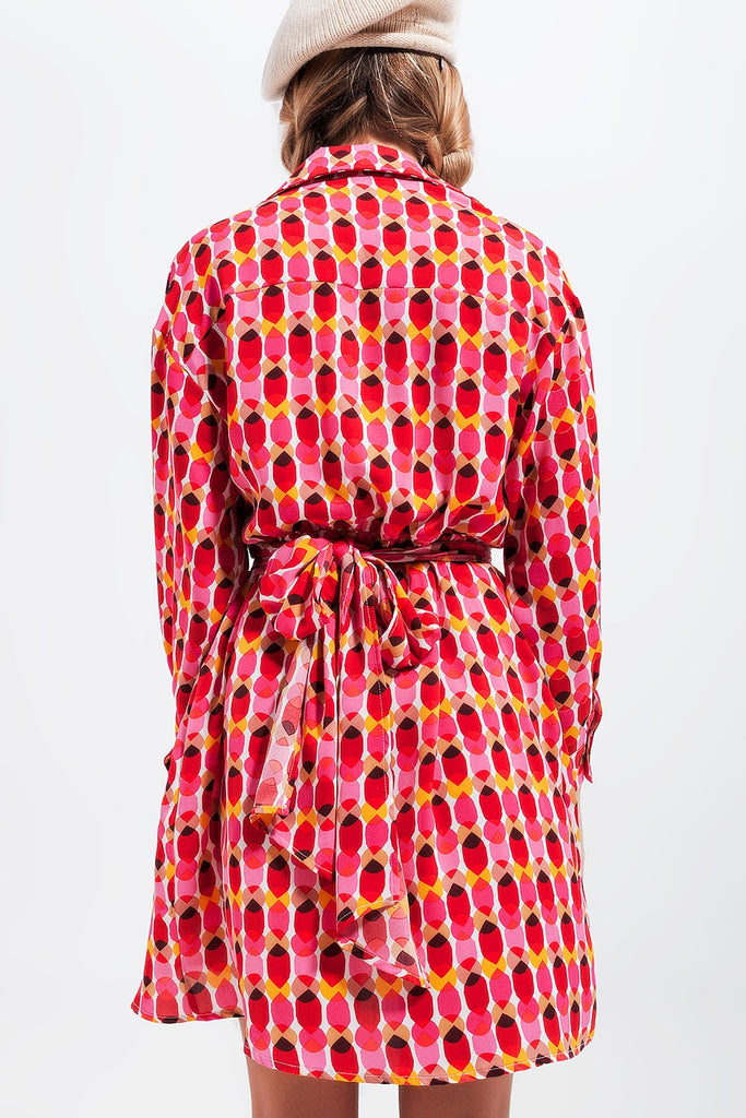 comprimento: Comprimento Mini. Subcategoria: Vestidos. colarinho: Pescoço em V. Mangas: Mangas longas. Impressao: Geo print. Cortam: Com sobreposição. estilo: Casual. Fechamento : Botões parciais. Detalhes do produto: Totalmente forrado. Cintura : Laço na cintura. runs true to size. S.