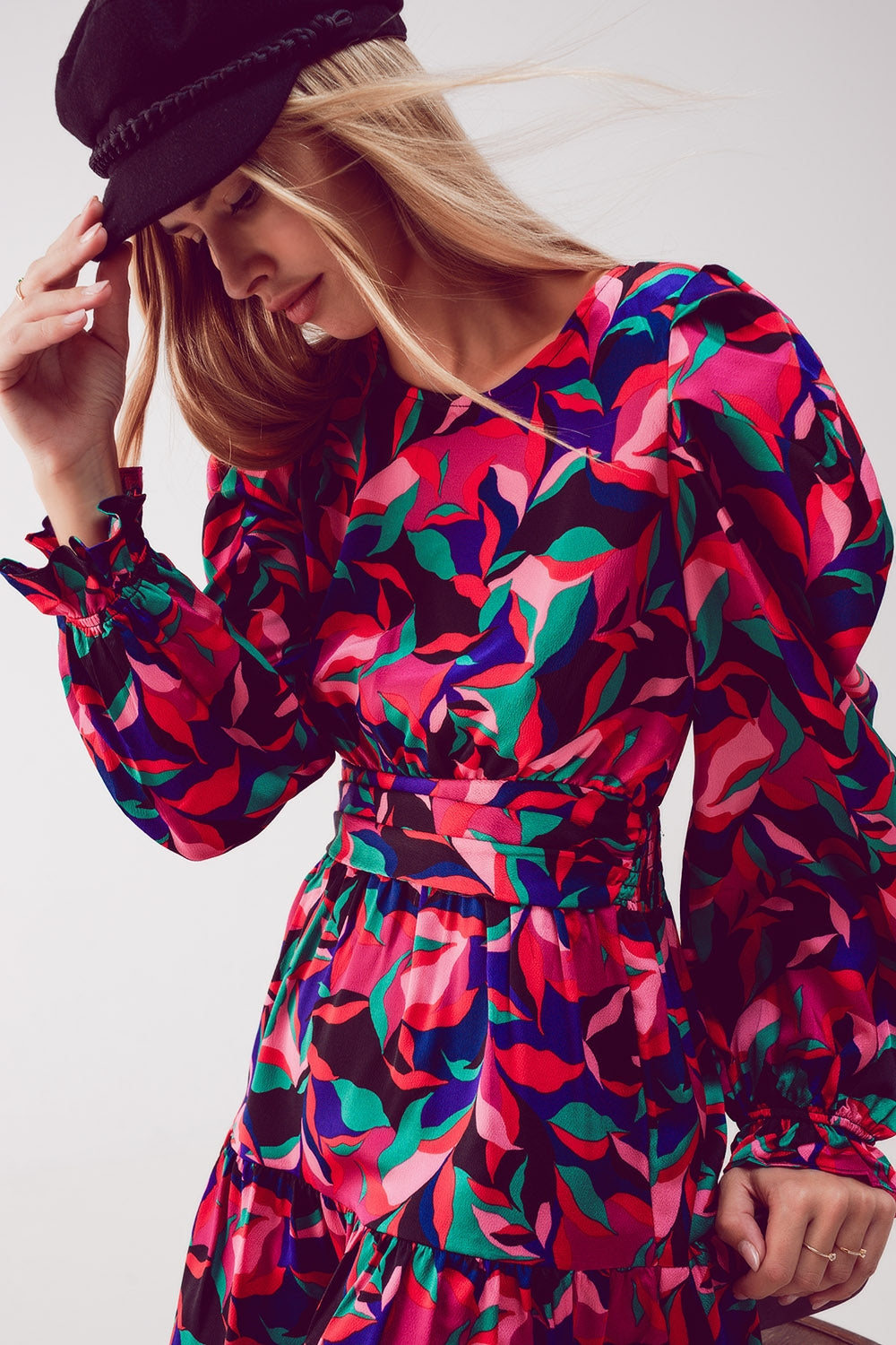 Mini vestido de manga de Puff em preto