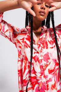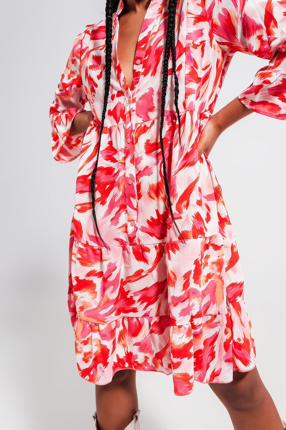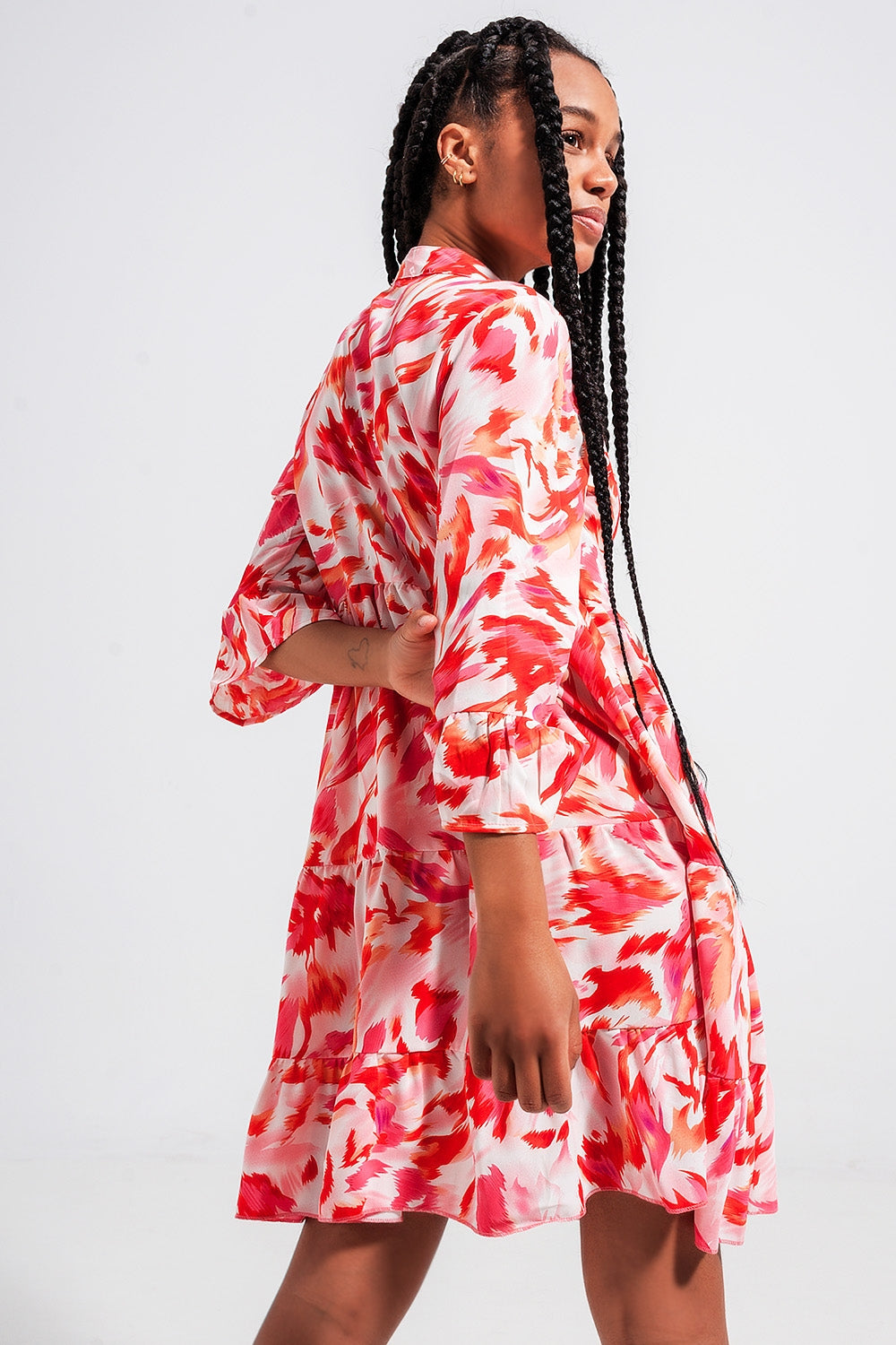 comprimento: Corte curto. Subcategoria: Vestidos. colarinho: Pescoço em V. Mangas: Manga de três quartos. Impressao: Impressão abstracto. Cortam: Desenho amplo. estilo: Comfy. Tecido: Tecido leve . Fechamento : Fecho do botão. Detalhes do produto: Saia em camadas. runs true to size. S.
