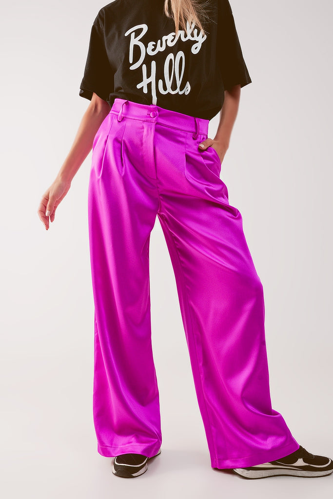 Palazzo calças com dardos Fuchsia