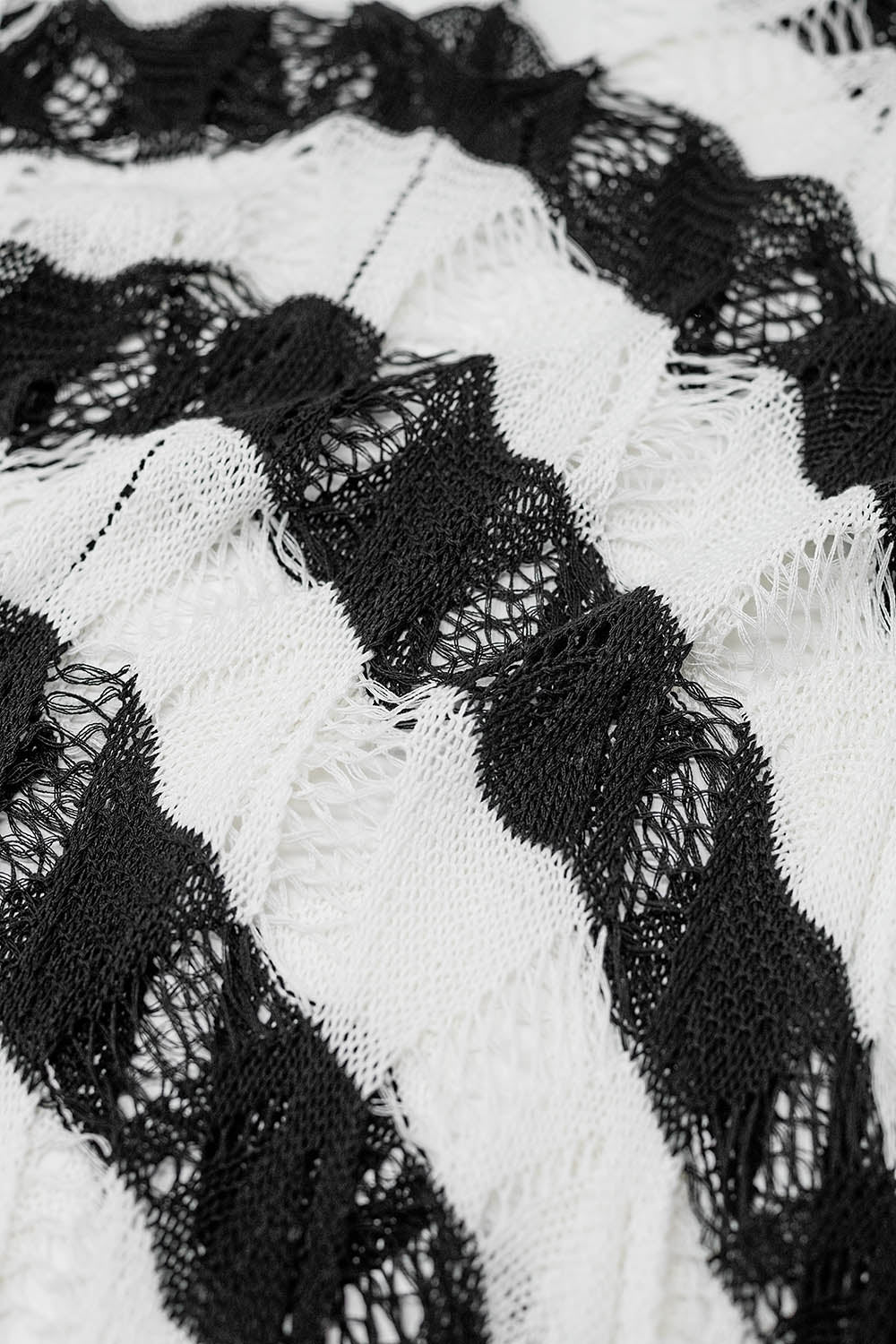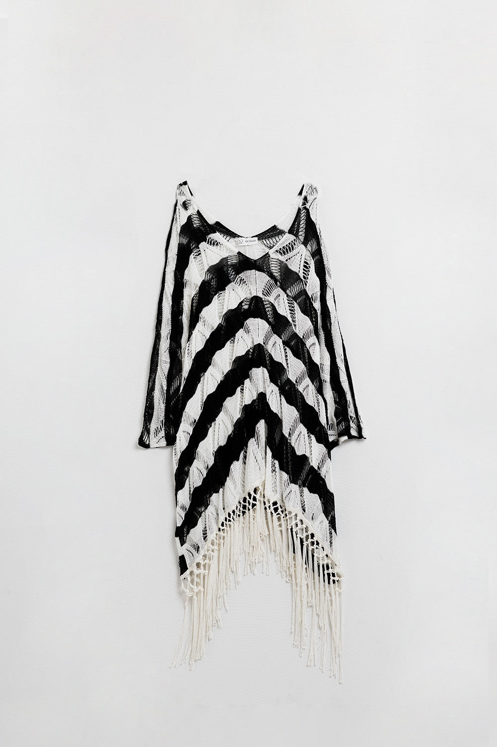 Subcategoria: Cardigan . colarinho: Colarinho largo. Mangas: Mangas grossas. Impressao: Modelo listrado. Cortam: Encaixe sobredimensionado. estilo: Comfy. detalhe: Acabamento com franjas. Tecido: Malha Pointelle. U.