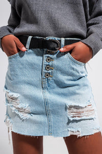 Saia de ganga com botões em azul claro