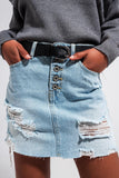 comprimento: Comprimento Mini. Subcategoria: Saia . Cortam: Ajuste padrão. estilo: Urban. Tipo calças de ganga: Distressed. detalhe: Detalhe de botões. Tecido: Ganga elástica. bolsos: Cinco sacos. Fechamento : Fecho do botão. Detalhes do produto: Bolsos funcionais. Cintura : Cinto não incluído. runs true to size. S.