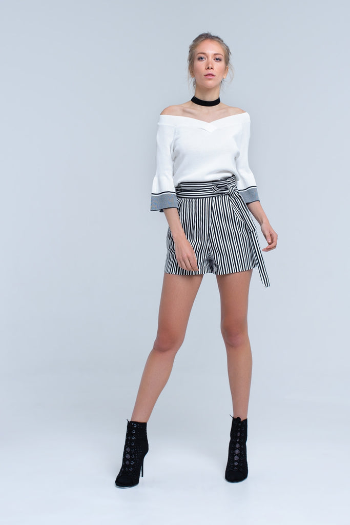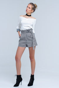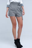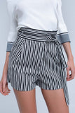 Short listrado preto com cintura alta