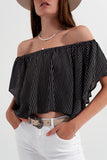 comprimento: Comprimento Mini. Subcategoria: Blusa . colarinho: Decote de Bardot. Mangas: Manga curta. Impressao: Modelo listrado. Cortam: Desenho amplo. estilo: Casual. runs true to size. S.
