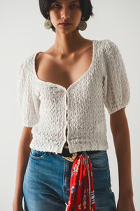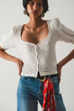 comprimento: Corte curto. Subcategoria: Top. colarinho: Decote em forma de coração. Mangas: Mangas insufladas. Cortam: Ajuste do corpo. estilo: Romantic. Tecido: Acolchoado. Detalhes do produto: Decote afundado. runs true to size. S.