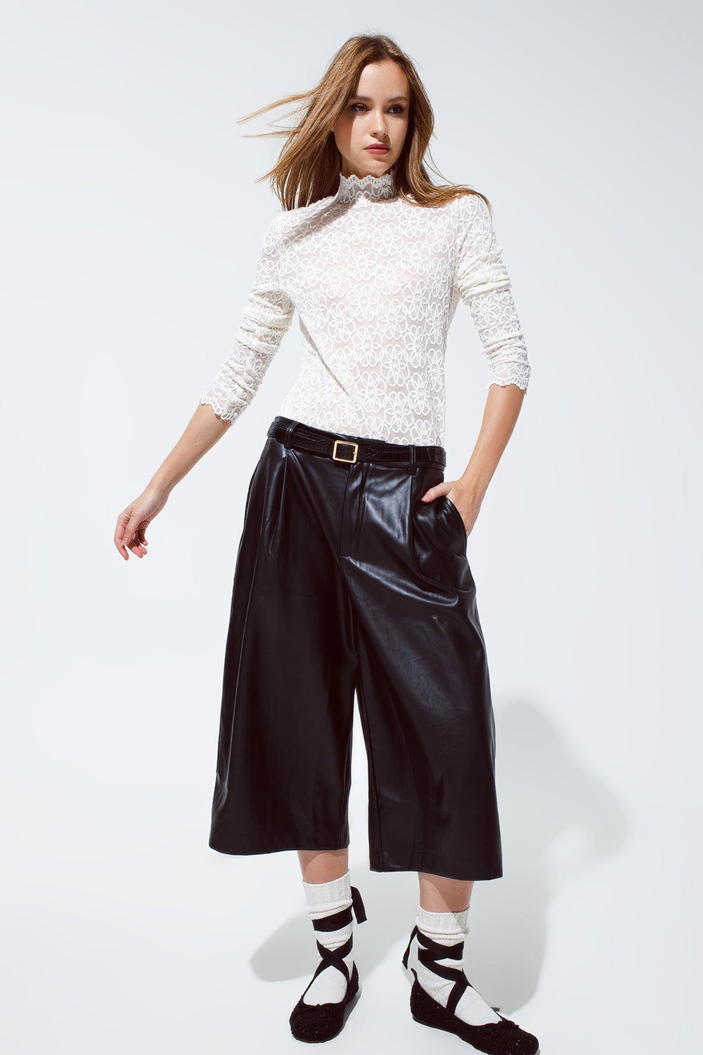 Top de gola alta com flores bordadas e pormenores de vieiras em branco