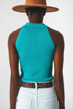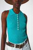 Subcategoria: Top. colarinho: Com colarinho de pólo. Mangas: Desenho sem mangas. Cortam: Ajuste do corpo. estilo: Daily. detalhe: Detalhe de botões. Tecido: Malha com nervuras. Fechamento : Botões parciais. runs small. S.