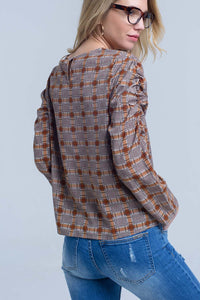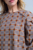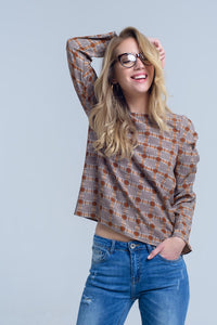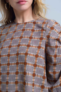 Subcategoria: Top. colarinho: Pescoço redondo. Mangas: Mangas longas. Impressao: Desenho quadriculado. estilo: Casual. runs big. S.