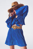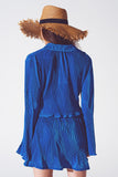 Top plissado frontal amarrado em azul