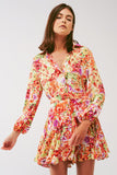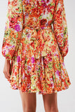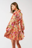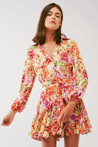 comprimento: Comprimento Mini. Subcategoria: Vestidos. colarinho: Com colarinho de pólo. Mangas: Mangas insufladas. Impressao: Com estampa de flores. Cortam: Ajuste padrão. estilo: Romantic. detalhe: Cinto do mesmo tecido incluído. Bordadura: Rufos ao longo da bainha. runs true to size. S.