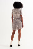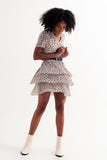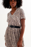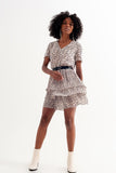 Vestido curto cor-de-creme com cintura franzida e sobre saia