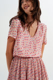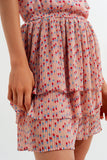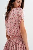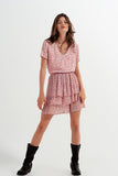 Vestido curto cor-de-rosa com cintura franzida e sobre saia