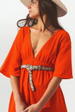 comprimento: Comprimento maxi. Subcategoria: Vestidos. colarinho: Pescoço em V. Mangas: Mangas de anjo. Cortam: Desenho amplo. estilo: Estilo boho. detalhe: Abertura para trás. Fechamento : Gravatas de laço atrás. Bordadura: Corte lateral. Detalhes do produto: Faixa ajustável na parte de trás. runs true to size. S.
