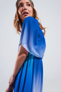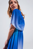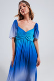 Vestido Maxi com desenho de gradiente e decote de coração azul
