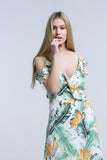 comprimento: Comprimento midi. Subcategoria: Vestidos. colarinho: Pescoço em V. Mangas: Cintas fixas. Impressao: Com estampa de flores. estilo: Casual. runs true to size. S.