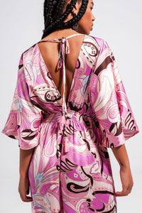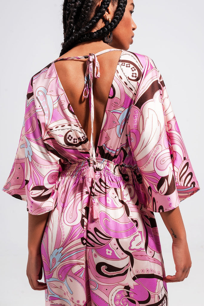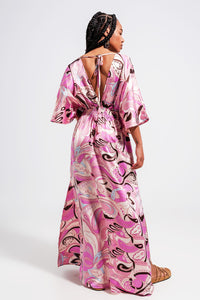 Vestido midi cor de rosa com detalhes de alisamento na cintura e lacagem nas costas