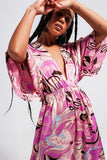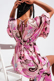comprimento: Comprimento maxi. Subcategoria: Vestidos. colarinho: Pescoço em V. Mangas: Manga curta. Cortam: Desenho amplo. estilo: Estilo boho. detalhe: Abertura para trás. Tecido: Tecido leve . Bordadura: Corte lateral. Detalhes do produto: Decote afundado. Cintura : Cintura elástica. runs true to size. S.