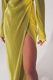 comprimento: Comprimento midi. Subcategoria: Vestidos. colarinho: Pescoço em V. Mangas: Mangas longas. Cortam: Com sobreposição. estilo: Party. detalhe: Frente cruzada. Tecido: Cetim. Fechamento : Fecho por laços . Detalhes do produto: Abertura das coxas. Cintura : Laço na cintura. runs true to size. S.
