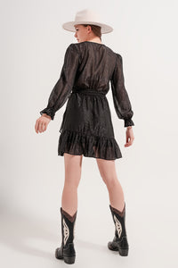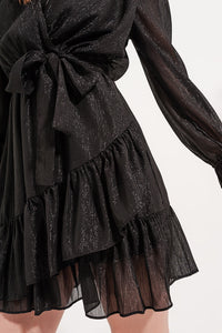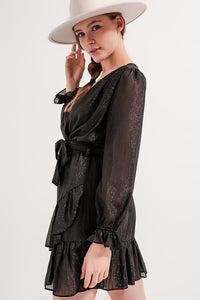 Vestido preto curto com bainha e detalhe cruzado flácido