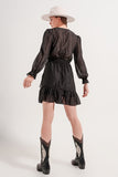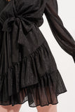 comprimento: Comprimento Mini. Subcategoria: Vestidos. colarinho: Pescoço em V. Mangas: Mangas longas. estilo: Party. Tecido: Chiffon. Bordadura: Punhos com rufos e elásticos. Detalhes do produto: Com pregas. Cintura : Laço na cintura. runs true to size. S.